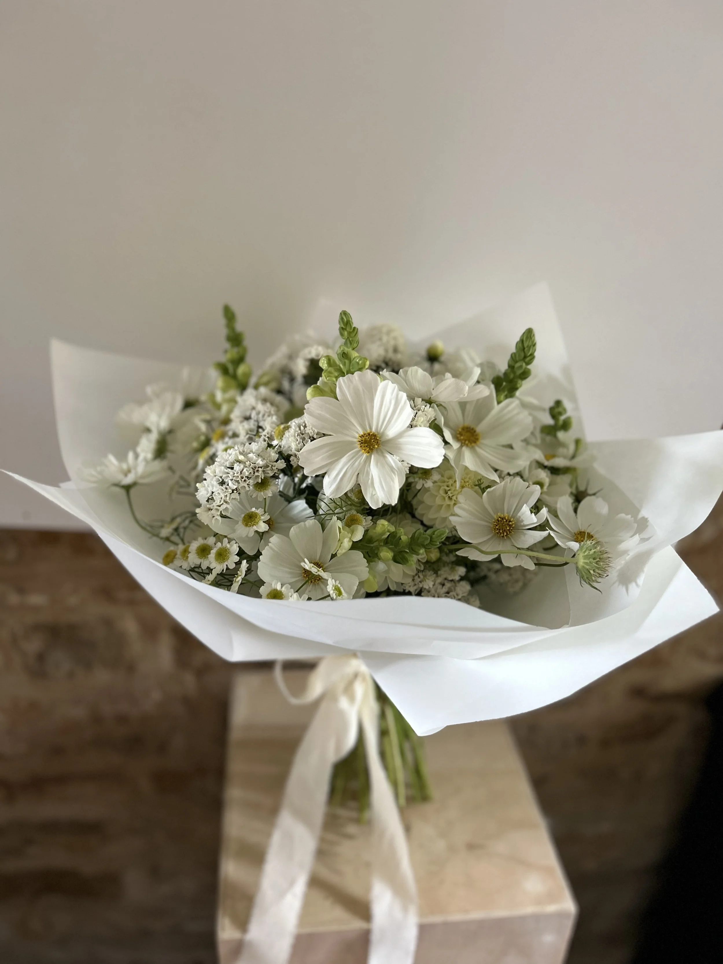 My style is influenced entirely by the flowers themselves, I work in a loose and natural style, sourcing British grown blooms wherever possible.